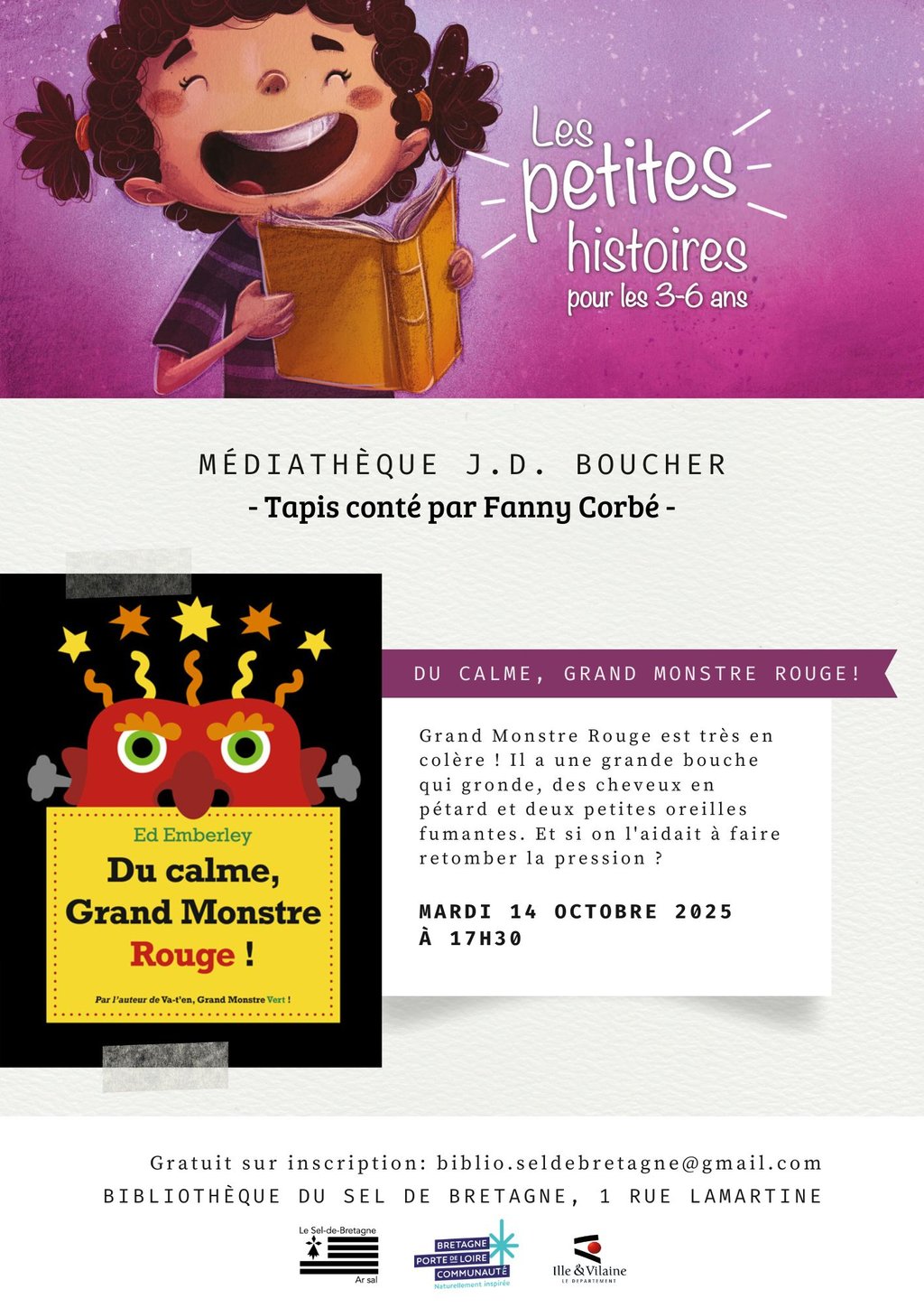 Rdv mardi 14 octobre 2025 pour les petites histoires de Fanny Corbé.